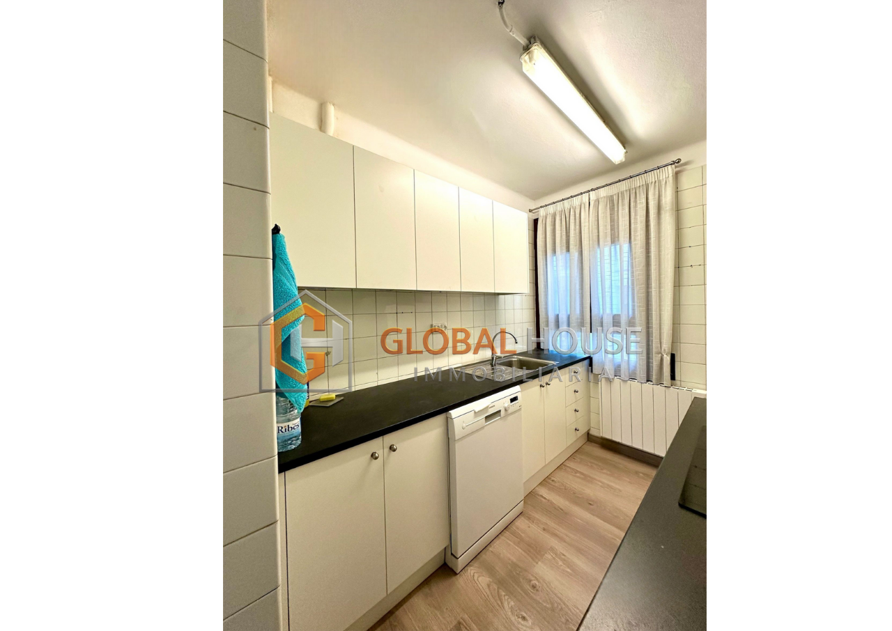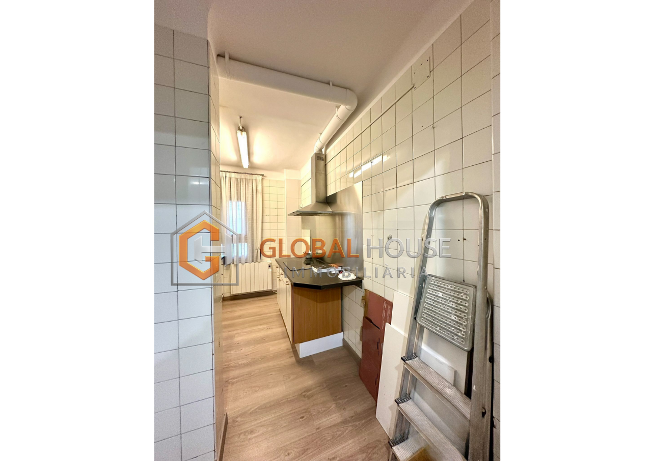 El pis compta amb una cuina totalment independent de la sala d’estar, oferint un espai separat i còmode per preparar els àpats sense interferir en les zones comunes de convivència. Aquesta cuina, de grans dimensions, permet una organització eficient i funcional de l’espai. Els dos banys complets estan equipats per satisfer les necessitats d’una llar gran, proporcionant comoditat i practicitat.